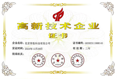先后荣获“科技部中小企业”证书、“中关村高新技术企业”证书、“软件企业”和“软件产品”双软证书。